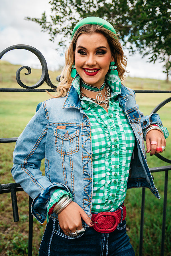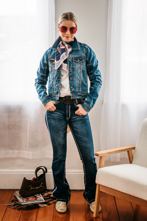 A classic denim jacket is the perfect addition to your Autumn wardrobe. Tailored from a stretch denim, this jacket allows you to move with ease. Longer arm allowance with cropped body length to sit perfectly at the waist. Lighter wash denim look with heavy tan stitching.