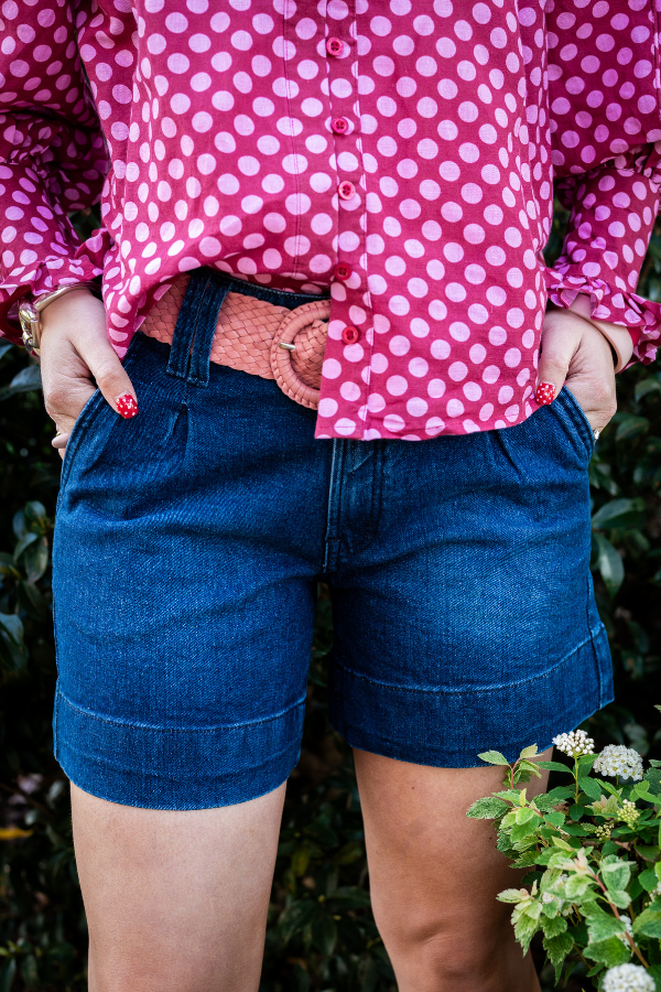 Our classic denim shorts are now available in a timeless white. Offered in two lengths, these shorts are stylish and comfortable. Able to be dressed up or kept super casual, these are an absolute ‘must have’ for the warmer months. Double belt loops and back welt pockets. White stretch denim with white stitching. DS-5 are the longer length design.
