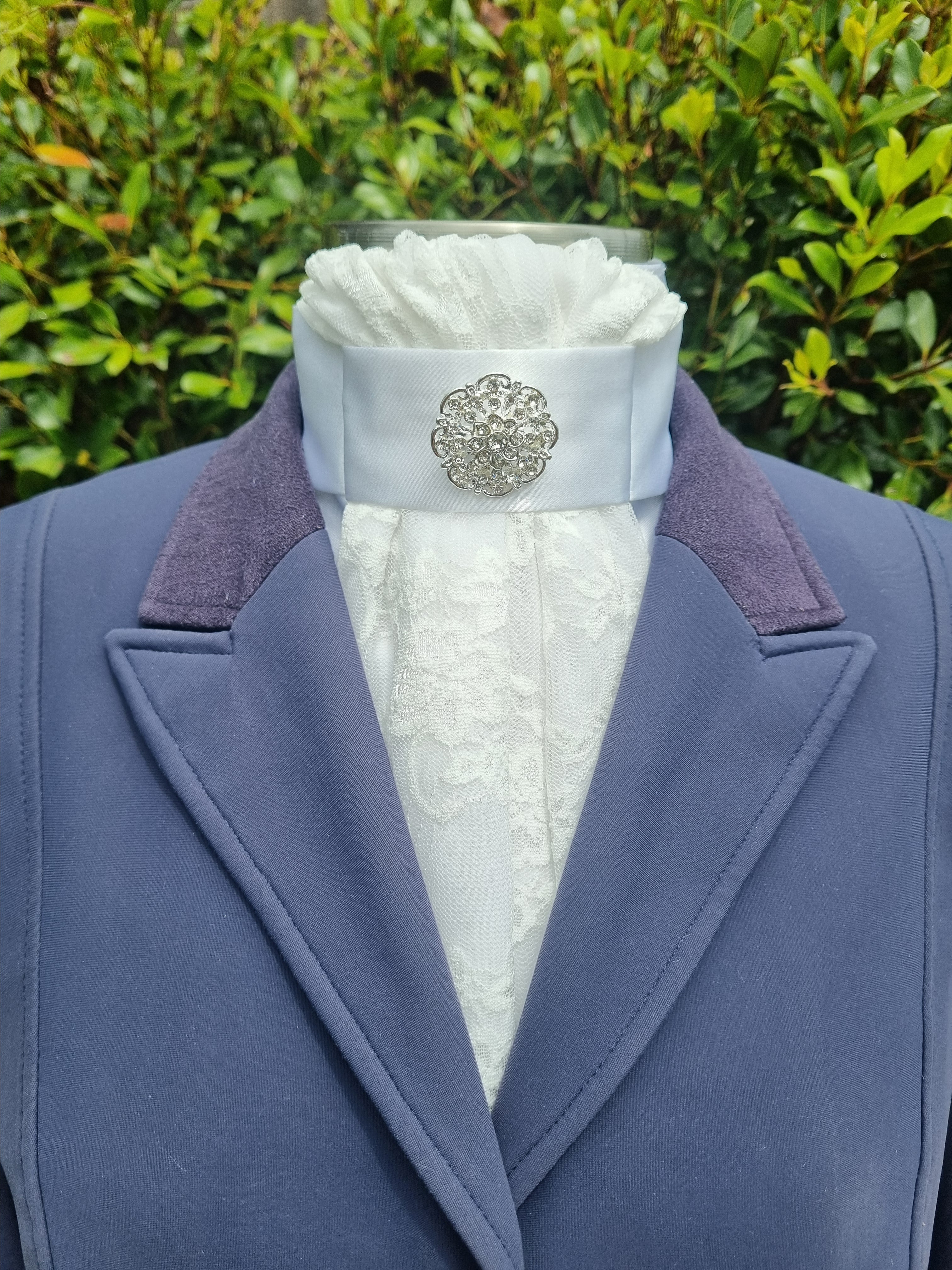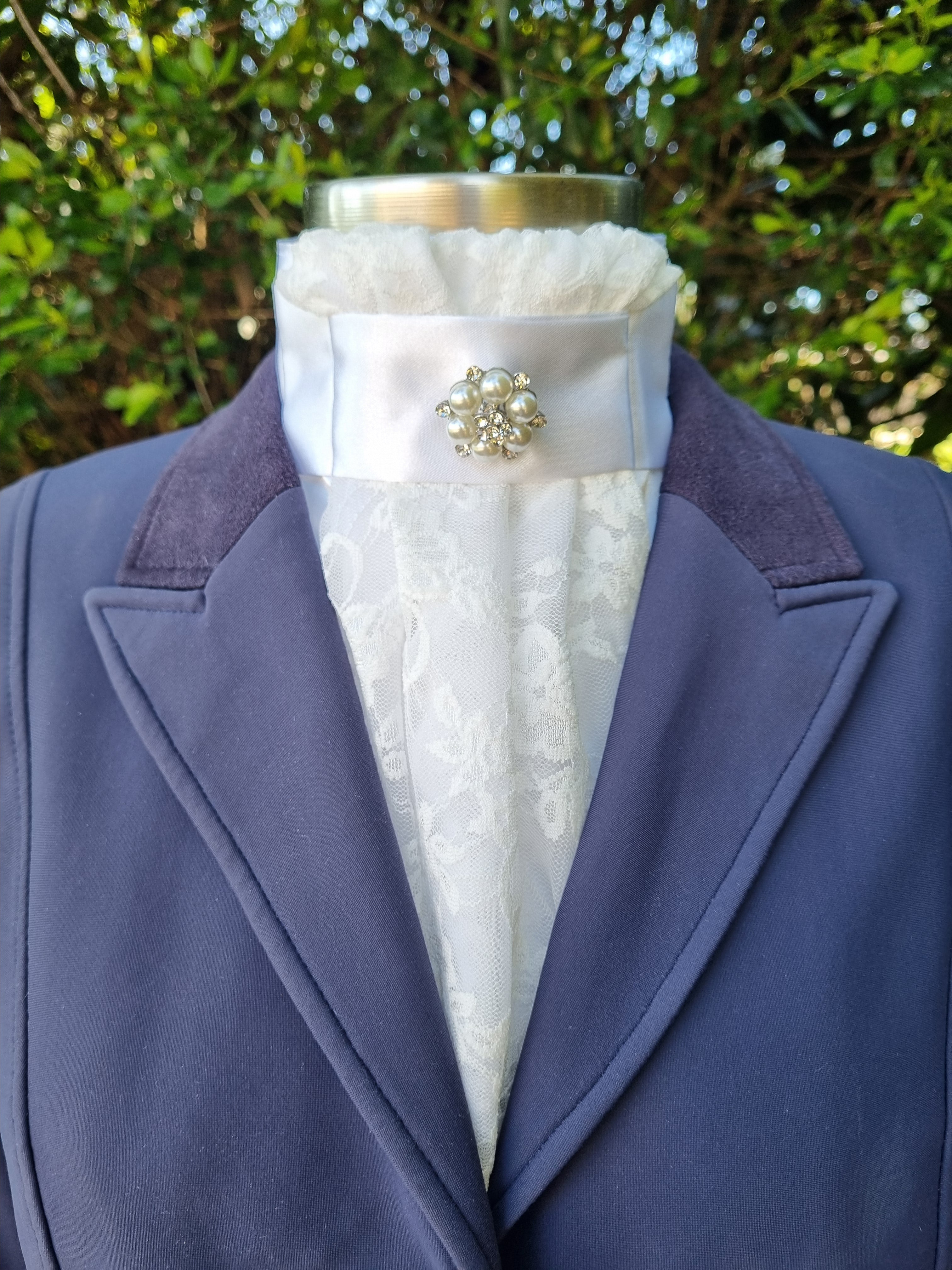 The Euro Grace is Crafted from delicate lace & satin with a luxurious soft feel and lustrous appearance. Comes with your choice of brooch.