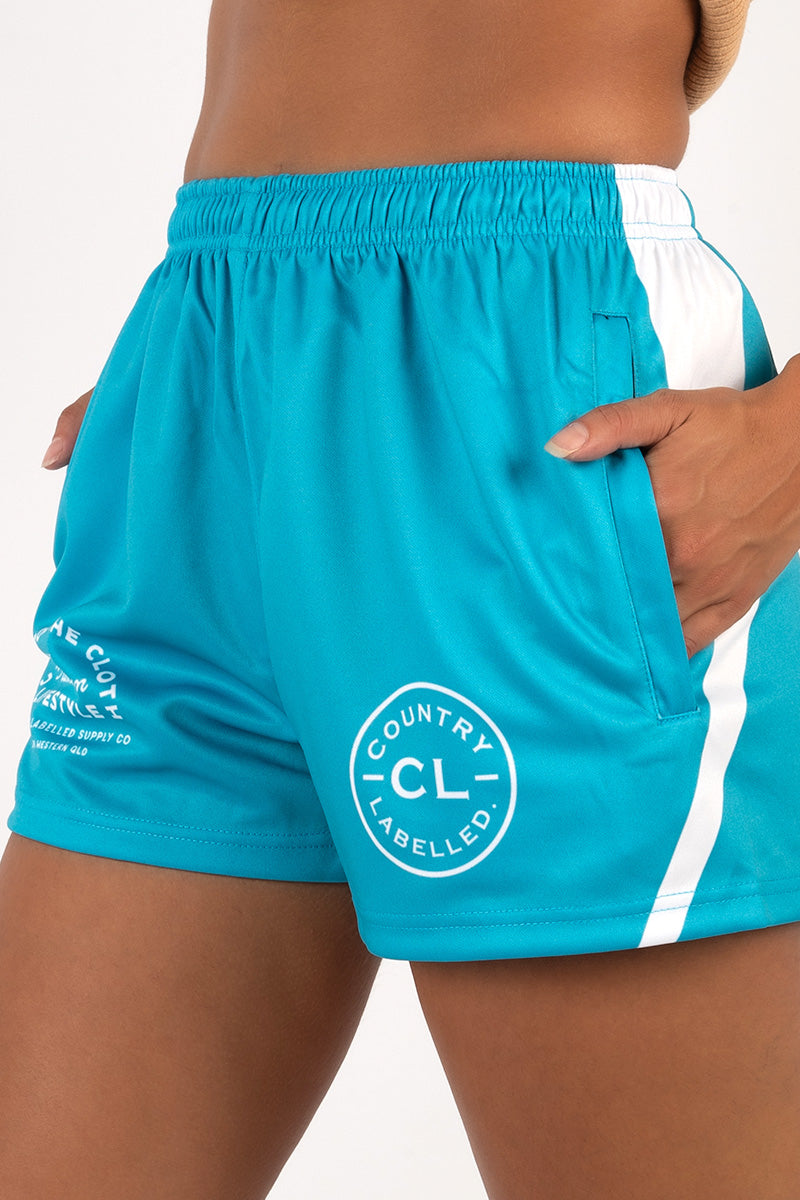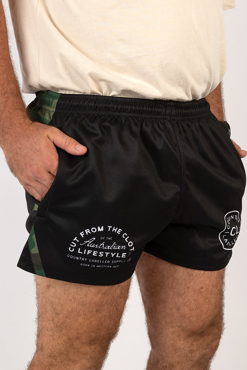Our country-labeled footy shorts are made of 100% polyester with a weight of 260GSM. They include a nylon drawstring cord, a sublimation country-labeled logo, a sublimation cut from the cloth logo, and a stripe down both sides. Additionally, they come equipped with two zipper pockets that can easily accommodate an iPhone or wallet. This ensures that when you jump in the ute, your belongings won’t fall out and end up under your feet. They are also spacious enough to carry a 2-way radio if you’re throwing a runner through the paddock.