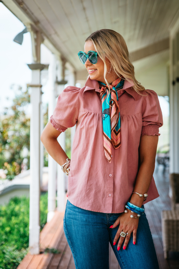 Crafted from a custom dyed linen fabric, this classic shirt is the ultimate in summer comfort. It can be effortlessly tucked into jeans for a chic look or left out over skinny jeans with flats for a relaxed vibe.