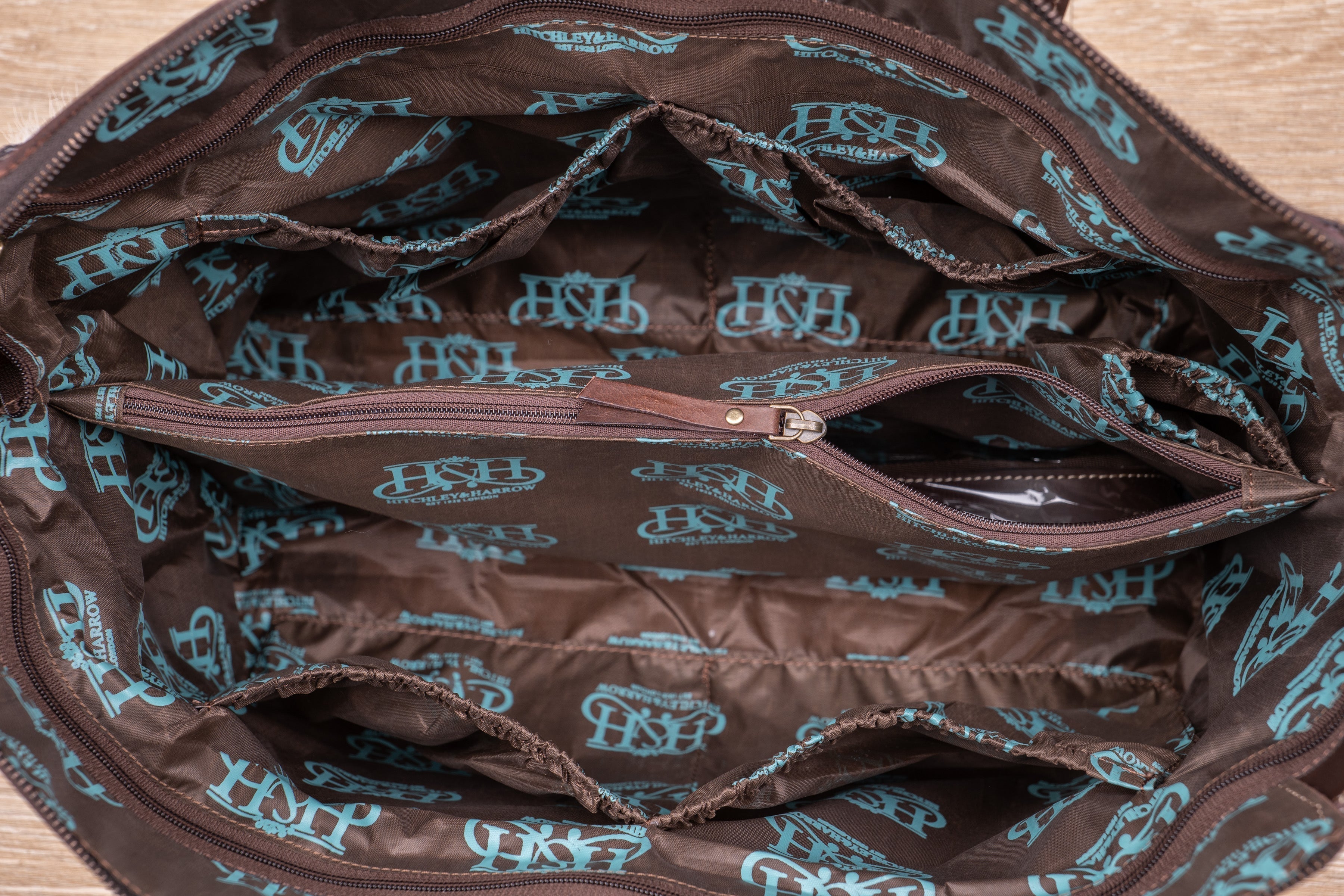 Constructed from Oily Buffalo leather and featuring hide on panels both front and back, our Nappy Bag has a multitude of internal elasticised pockets and a seperate internal central zippered divider. All our zips are genuine YKK quality and the full lining is able to be completely zipped out and washed if need be. Open end pockets x 2 for quick access to your keys and phone. Long over the shoulder handles and a removable padded shoulder strap as standard. The base features feet studs to protect your bag.