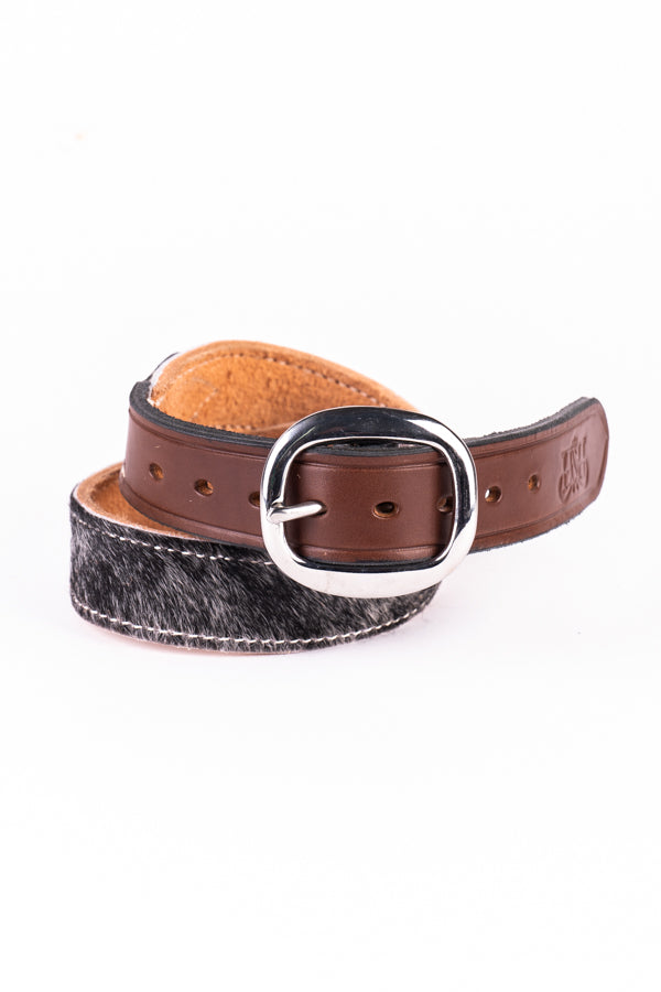 Handcrafted in Australia, our hide on Rancher belts are hard wearing and well made. Each featuring a different hide design, no two belts are the same. Quality brass or silver buckles in an oval or square design. Australian tanned leather trim. 40mm width.